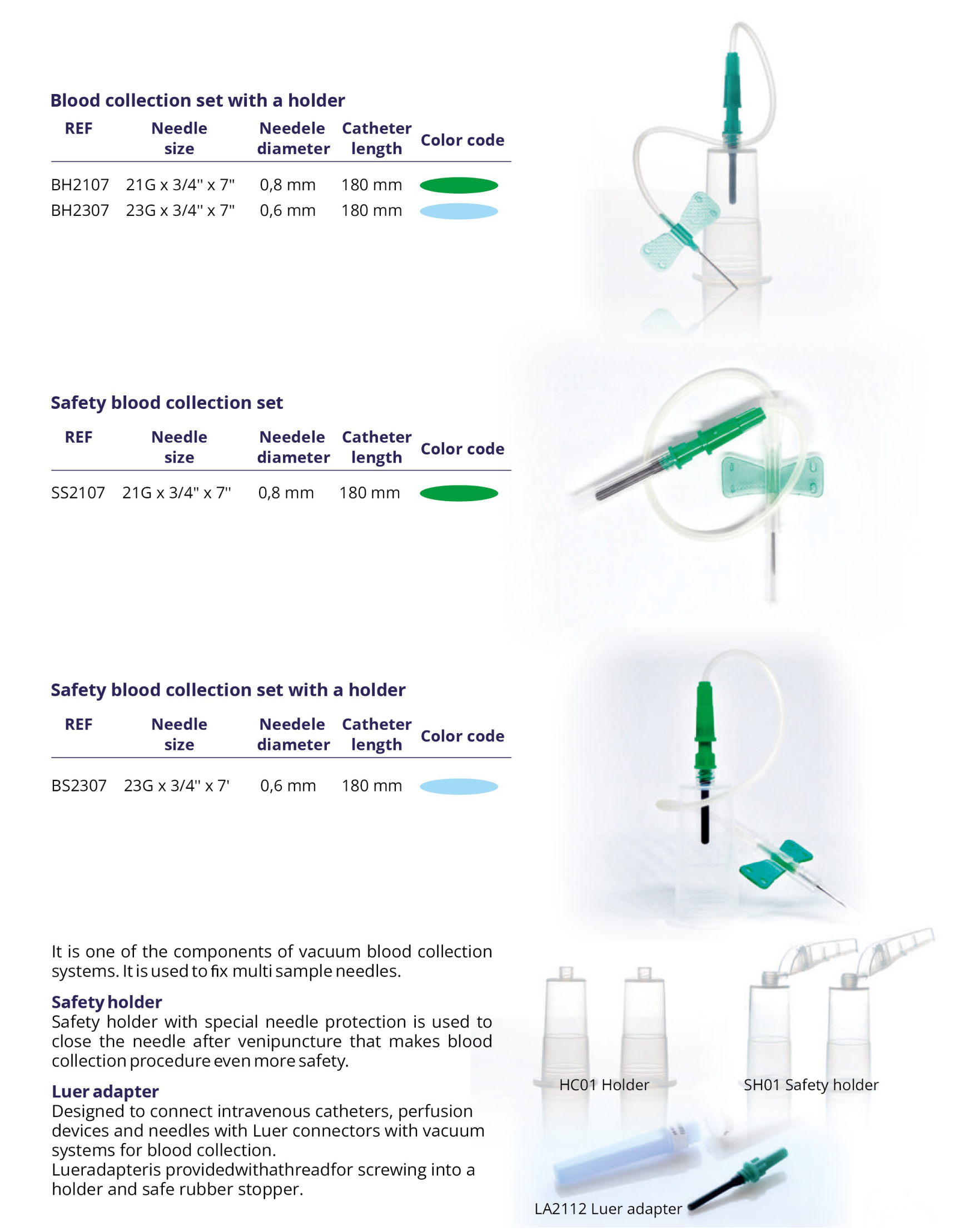 Blood collection set with a flexible catheter and luer adapter allows to successfully obtaining a blood collection from complicated patients. Such blood-sampling systems are particularly suitable for use in pediatrics, veterinary medicine, and intensive care units.